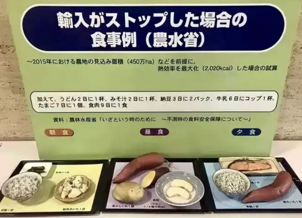 【敗北速報】こちらが日本が戦争開始して輸入がストップした場合の日本人の食事モデルになります😭