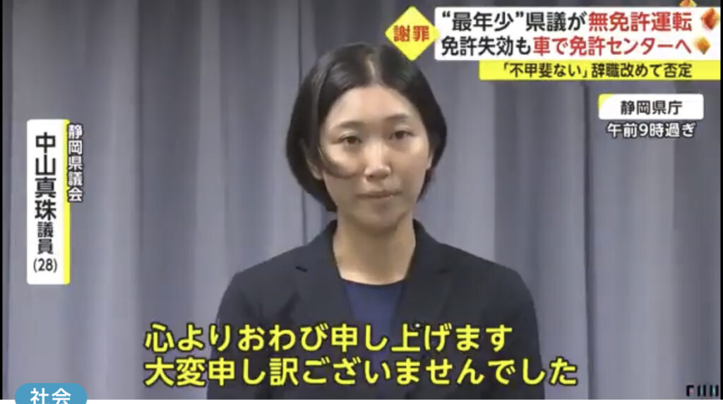 1: ばーど ★ 2023/08/09(水) 11:35:09.86 ID:wtZdWwmg9 報道陣の前で、深々と頭を下げた女性。先週、無免許運転が発覚した、静岡県議会の中山真珠議員(28)。 静岡県議会・中山真珠議員「心よりおわび申し上げます。大変申し訳ございませんでした」 中山県... -