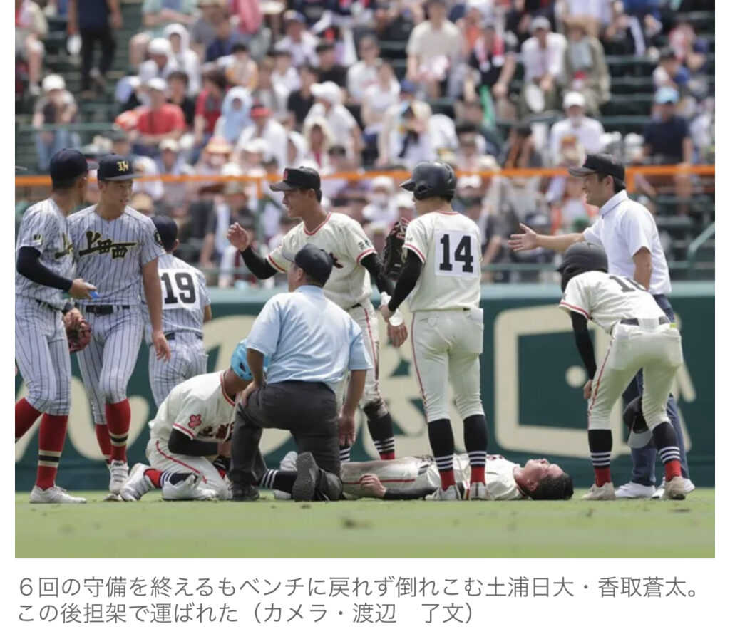 1: 首都圏の虎 ★ 2023/08/06(日) 13:53:05.74 ID:upnI0/N99 ◆第105回全国高校野球選手権記念大会第1日 ▽1回戦 土浦日大―上田西(6日・甲子園) 6回裏に試合中の選手2人が倒れ、ベンチに下がった。 上田西の先頭、2番・黒岩は三塁ゴロを打って、...