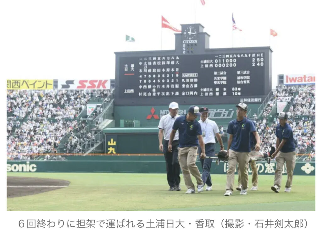 【甲子園】6回に土浦日大、上田西の両チームの選手が動けなくなりベンチに運ばれる 今大会から暑熱対策を実施