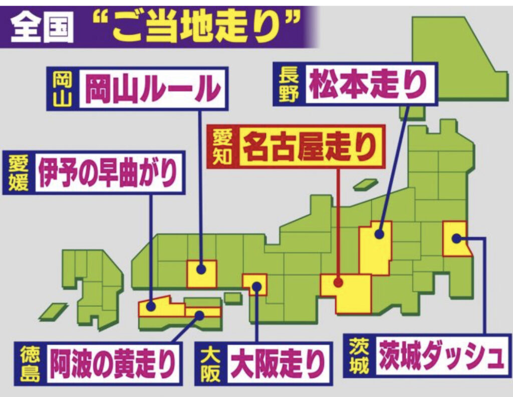 1: テイラー ★ 2023/08/05(土) 12:39:29.72 ID:??? TID:taylor 夏休みを迎え、レジャーなどで、自分の住まいでない地域で車を運転する機会が増えるかもしれません。 全国の「危険なご当地走り」をまとめました。 全国には、愛知県の「名古屋走り」、大阪府...