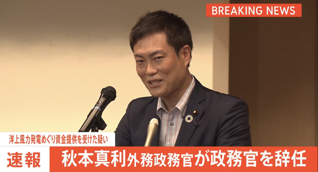 【速報】秋本真利氏 外務政務官を辞任 持ち回り閣議で了承 洋上風力発電めぐり業者側から多額の資金提供疑惑