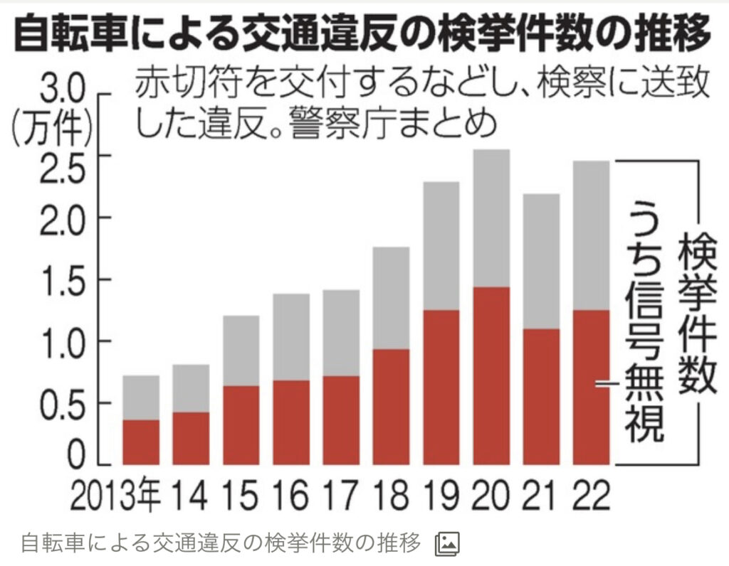 1: 少考さん ★ 2023/08/03(木) 10:23:38.06 ID:2ahXxMix9 自転車の交通違反に「青切符」を検討 事故、違反の増加で警察庁:朝日新聞 https://www.asahi.com/articles/ASR827DD7R82UTIL03F.html 2023年8月3日 10時08分 警察庁は3日、自転車による比較的軽... -