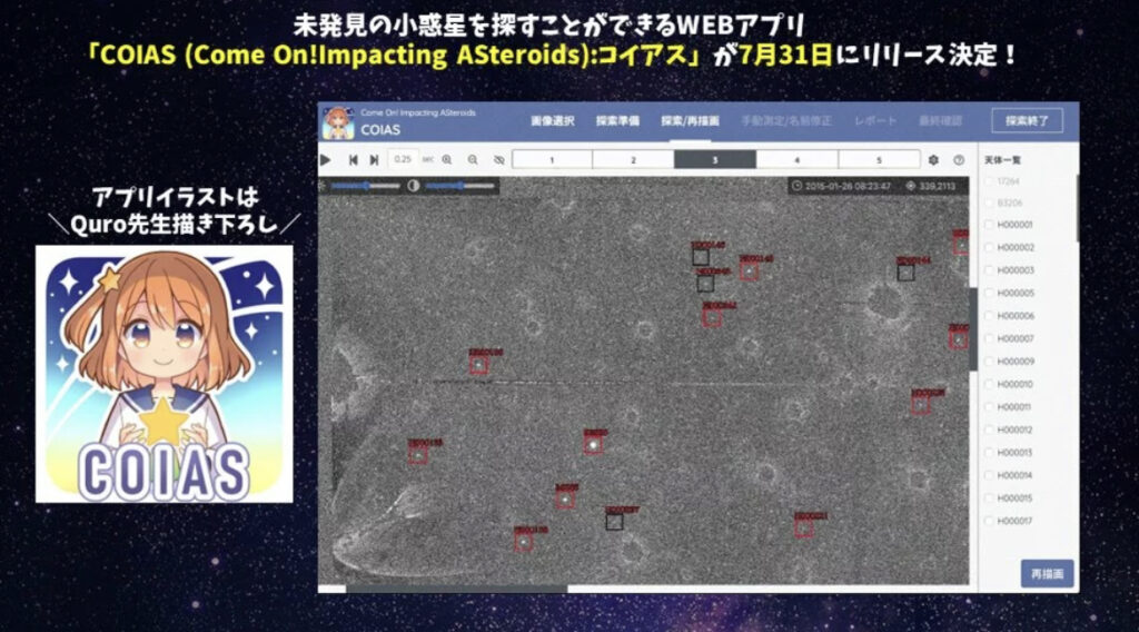 未知の小惑星を探すアプリ「COIAS」リリース 命名由来にアニメ『恋アス』、原作者によるイラストも
