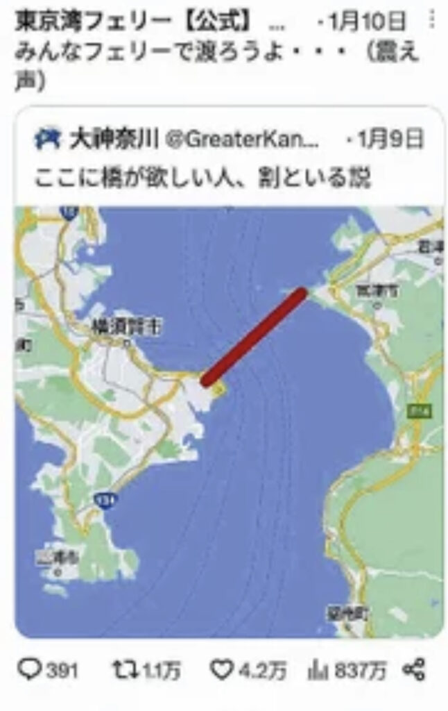 ツイッターで「ここに橋が欲しい人、割といる説」大反響…「東京湾口道路」促進協を動かす