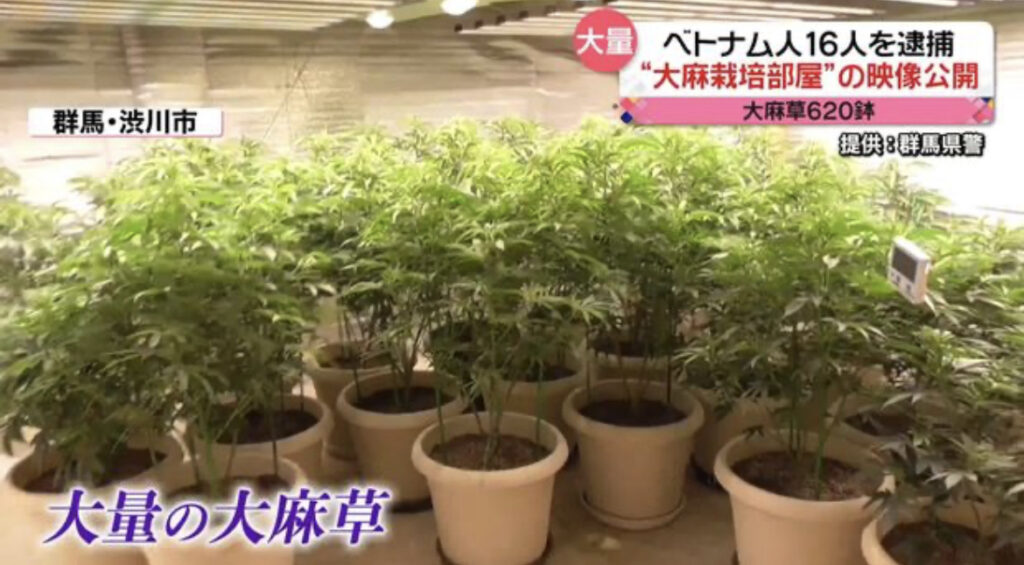 【外国人犯罪】ベトナム人16名、群馬で民家7軒を製造工場に改造し、620鉢もの大麻を栽培して全員逮捕