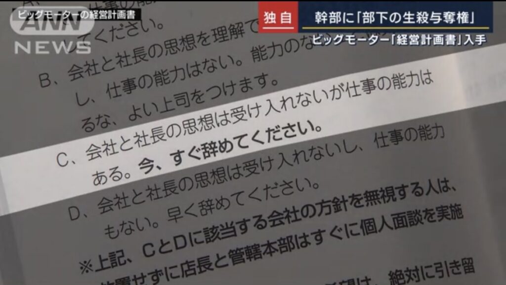 【独自】ビッグモーター「幹部に部下の生殺与奪権」組織の方針示す『経営計画書』入手