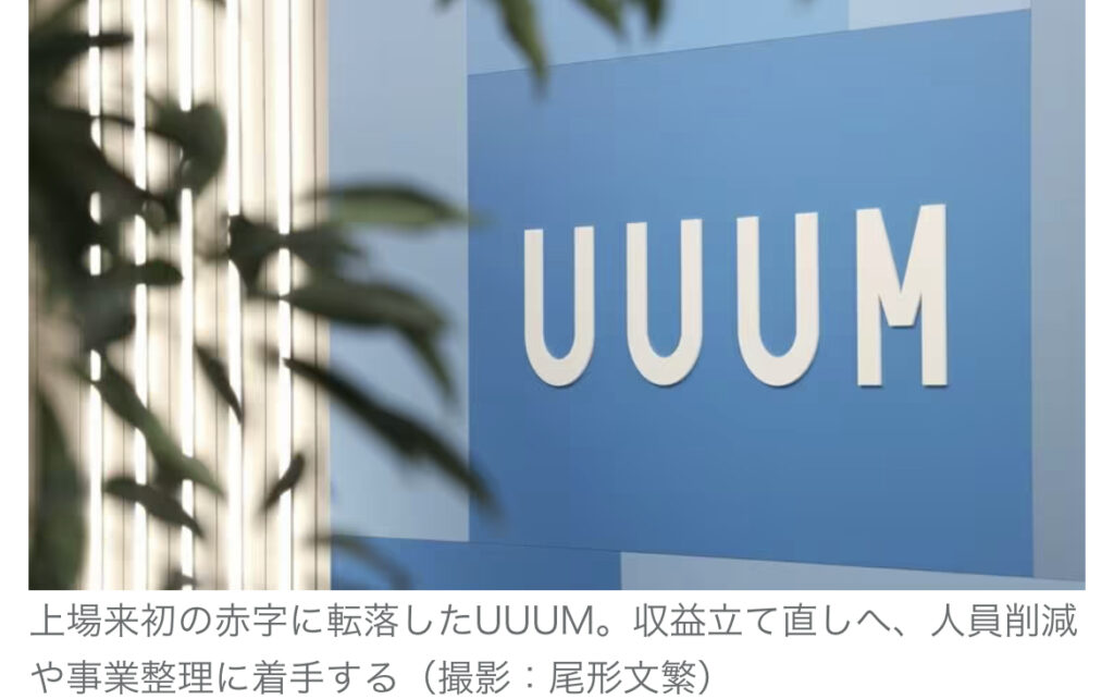 【国内最大のYouTuber事務所が危機】 UUUMが「過去最大の赤字」、ショート動画拡大が逆風に、決死の人員削減へ