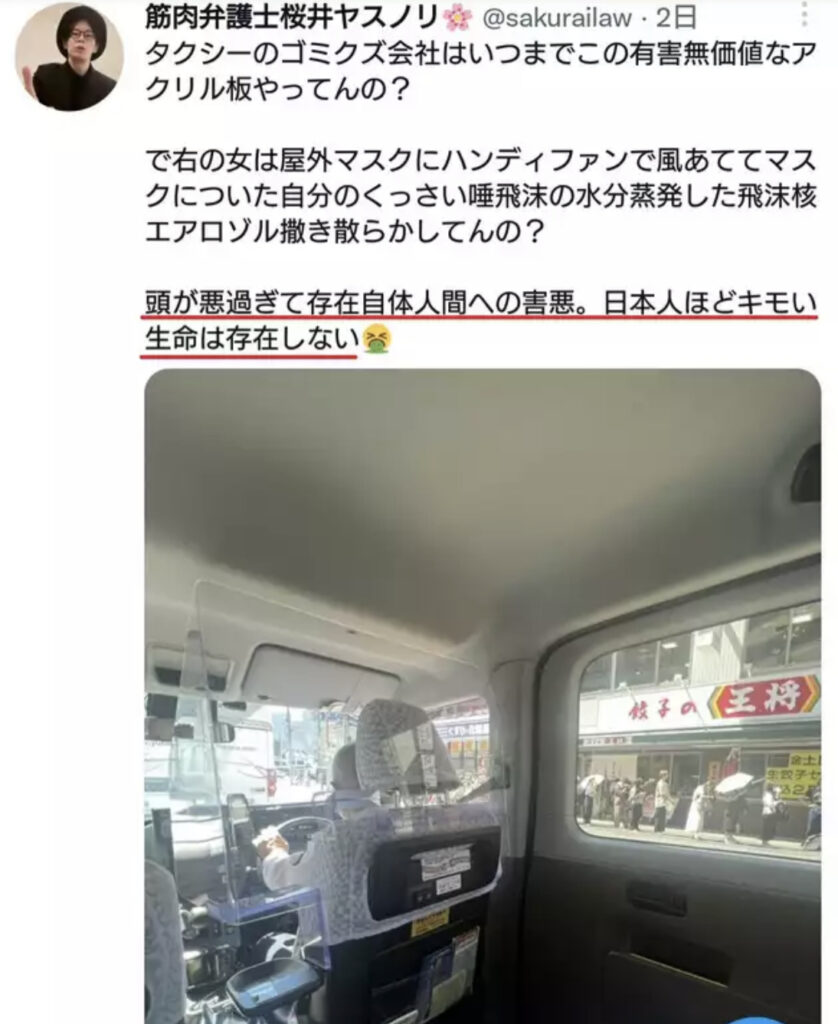 ツイッター弁護士 「タクシーのアクリル板は有害。日本人ほどキモい生命体は存在しない」