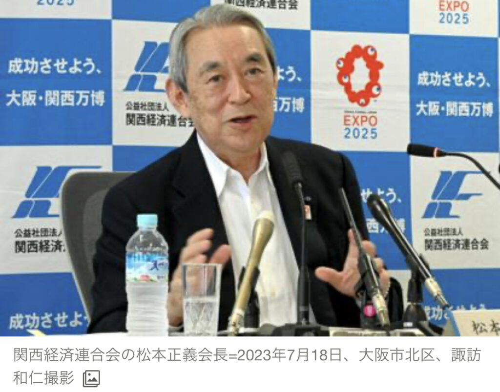 1: ぐれ ★ 2023/07/19(水) 08:20:34.10 ID:VTpo/HlS9 >>2023/7/18 21:41 朝日新聞 2025年の大阪・関西万博に参加する国・地域が建てるパビリオンの建設申請が遅れている問題で、関西経済連合会の松本正義会長(住友電気工業会長)は18日、個人的な意... -