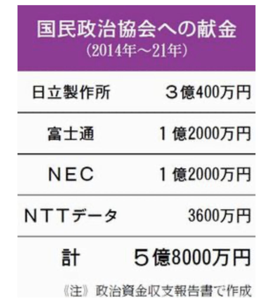 【自民党の政治資金団体「国民政治協会」】マイナンバー 政官財の癒着 受注4社が自民党に献金5.8億
