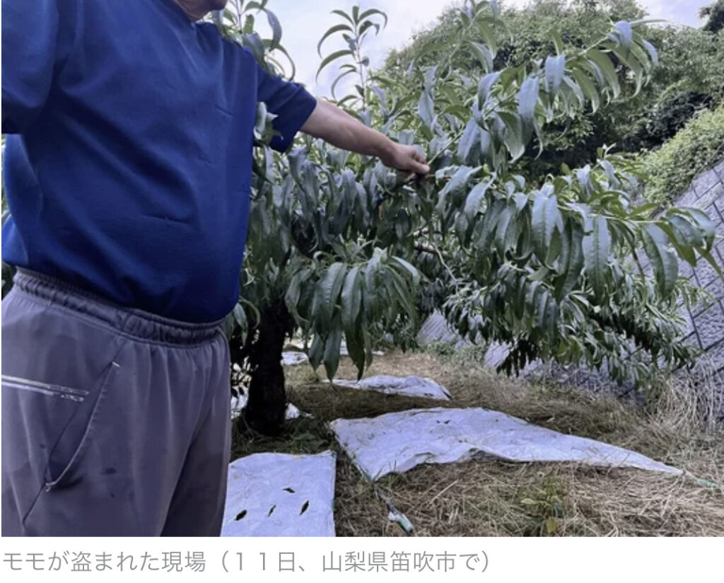 一体誰が・・・ 山梨県で収穫前のモモ1000個盗まれる被害