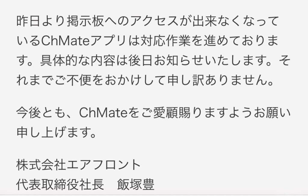 【朗報】ChMateアプリ、掲示板へのアクセス対応作業を進めてる模様