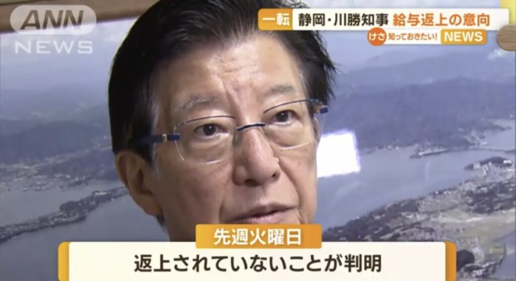 静岡県知事、給与返上されていないことが判明→返上で問題は解決しませんwと反論→叩かれて返上を表明
