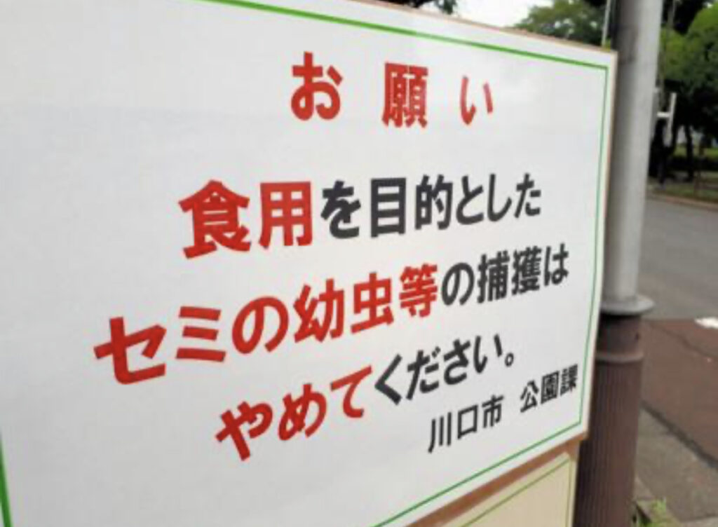 食用でセミの幼虫捕らないで 公園に出現の看板