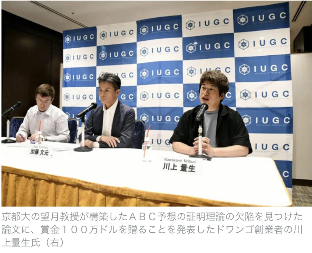 数学「ABC予想」の証明理論、欠陥見つけたら賞金100万ドル 川上量生の私費で