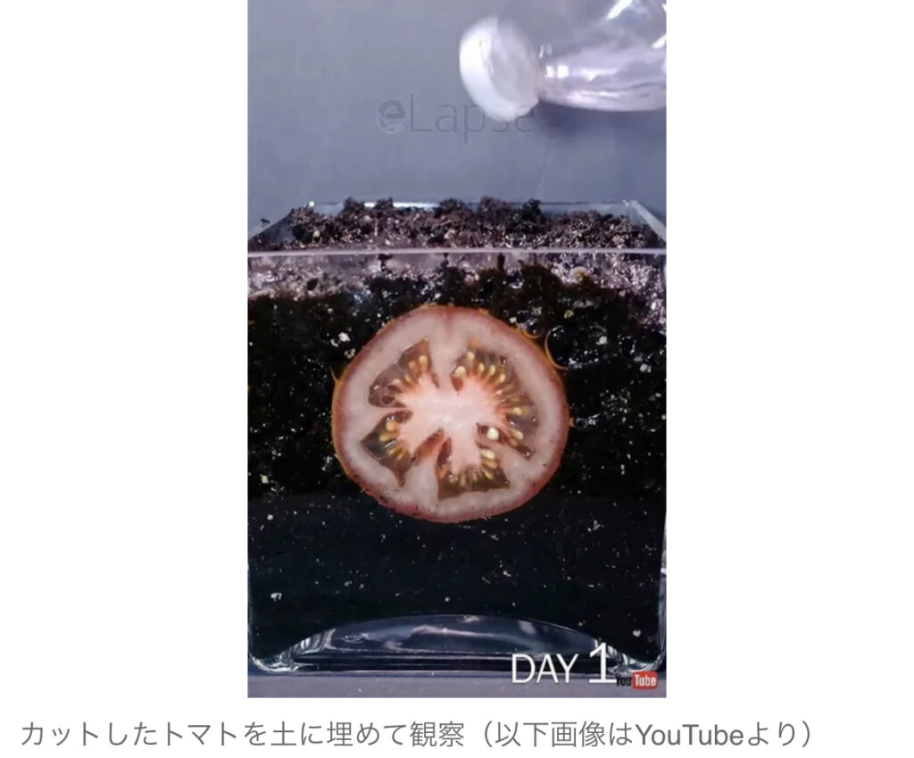 1: ◆Sen4E3P802 愛の戦士 ★ 2023/06/29(木) 04:55:01.06 ID:O83WXOkK9 ねとらぼ 6/28(水) 21:00 カットしたトマトを土に埋めて観察(以下画像はYouTubeより) スライスしたトマトを土に埋めるとどうなるかを観察したタイムラプスが、興味深い結果だとYouT... -