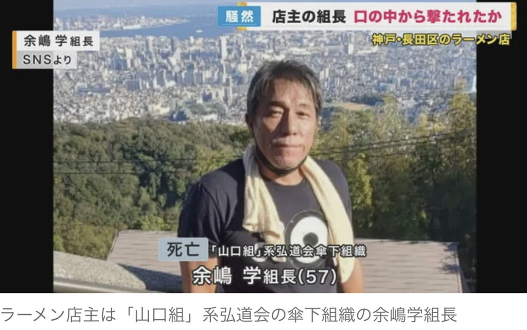 1: シャチ ★ 2023/04/24(月) 19:13:44.95 ID:Z5PNhYBi9 22日、神戸市長田区のラーメン店で、暴力団の組長が、頭から血を流して死亡していた事件。この組長が口の中から頭に向かって拳銃で撃たれたとみられることが分かりました。 22日の午前11時すぎ、神戸... -