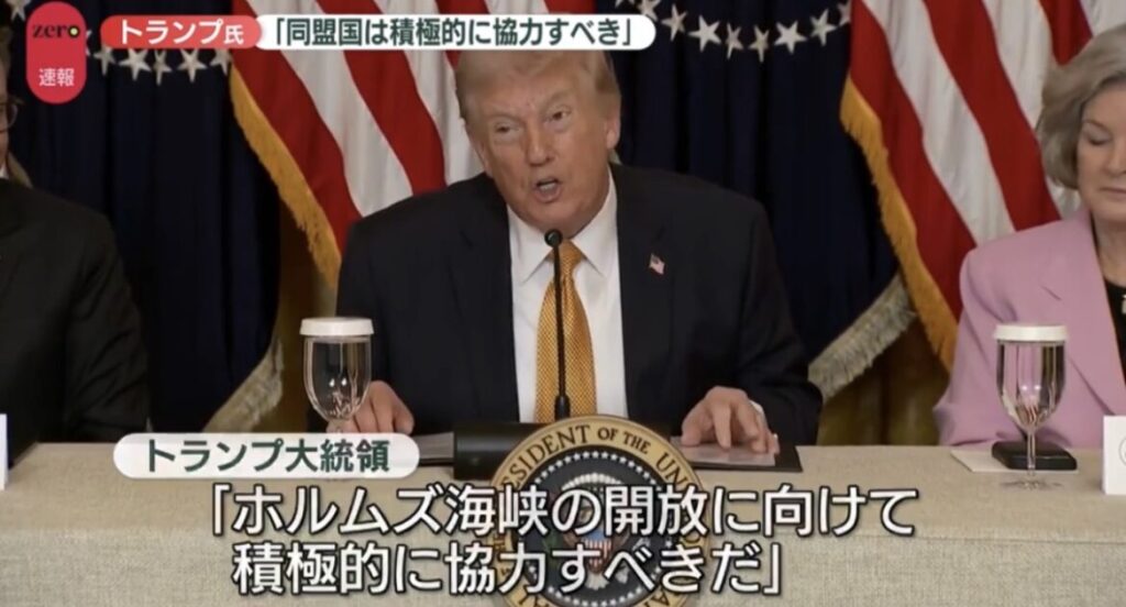 トランプ大統領「同盟国は積極的に協力すべき」SNSに投稿 ホルムズ海峡の安全確保に向け