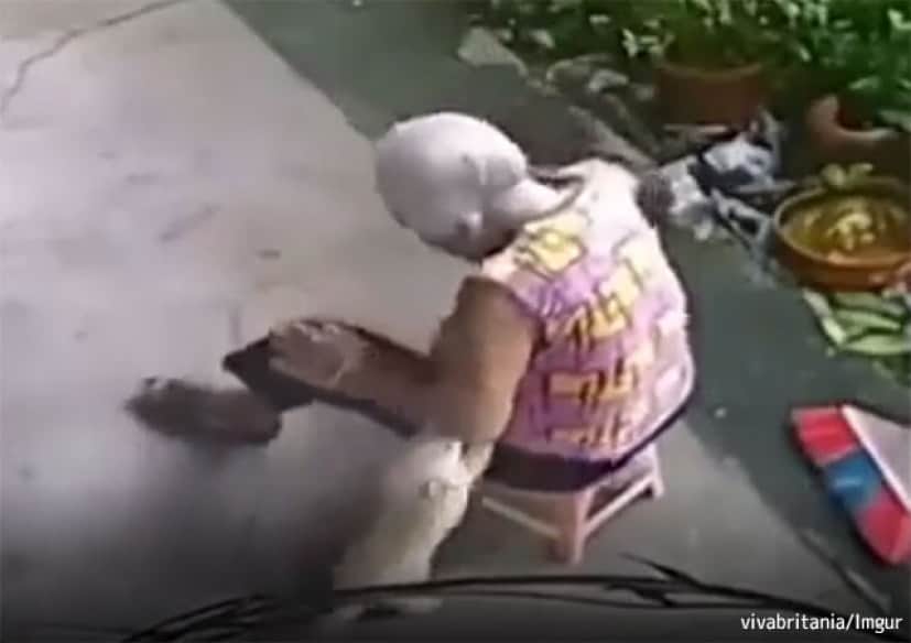 小さな体で転がりながら、なんとかおばあさんがすぐに座れる位置に椅子を置こうとする犬。おかげでおばあさんはすぐに椅子に座ることができたようだ。