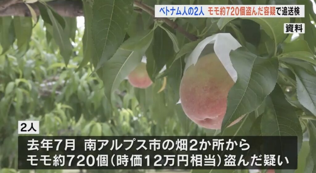 【山梨】畑からモモ720個を盗んだ疑い グエン容疑者ら2人を追送検 全国各地のベトナム人に発送か