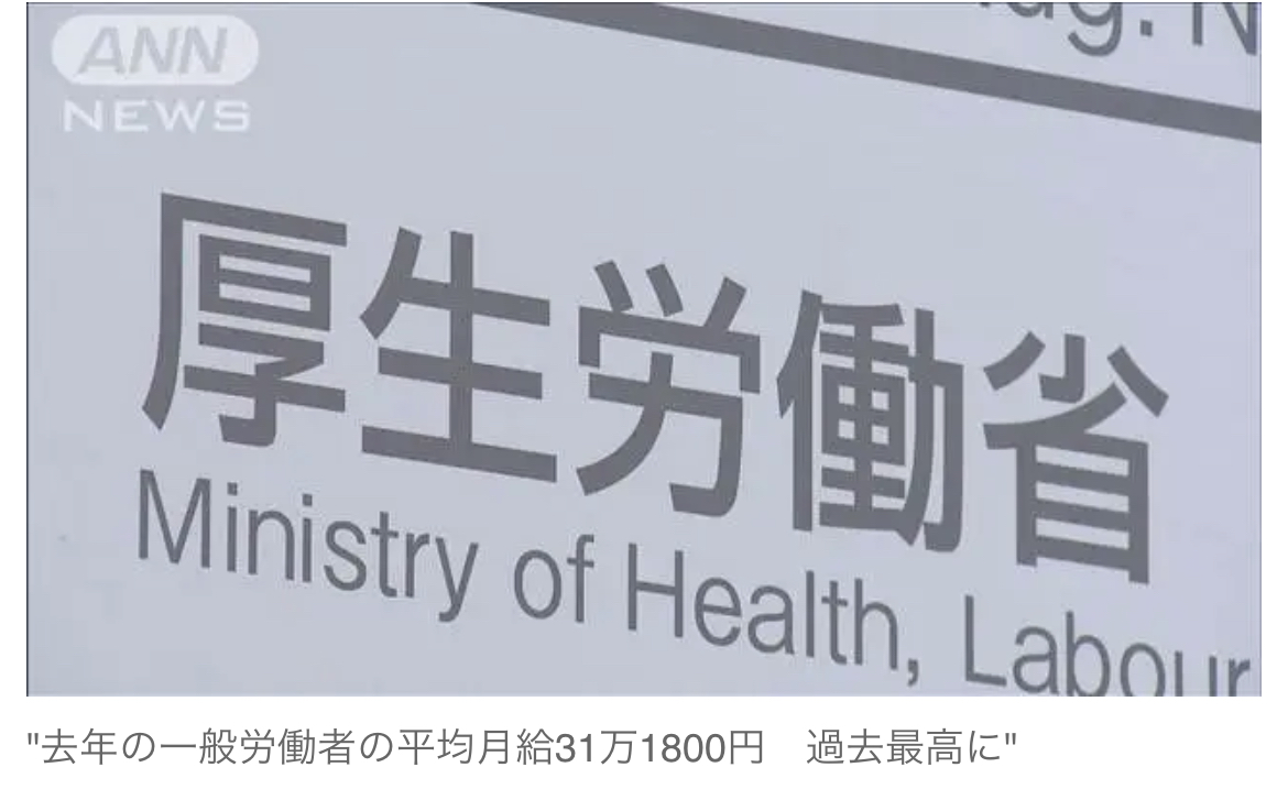 一般的な労働者の去年の平均月給は31万1800円で、過去最高になったことが分かりました。