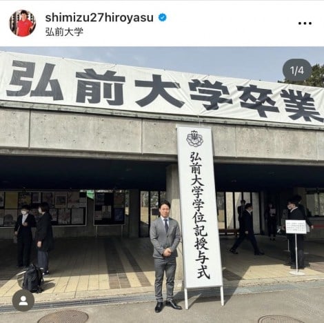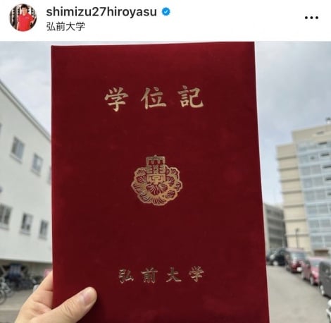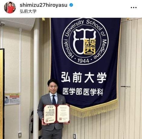 長野五輪男子スピードスケート500メートル金メダリストの清水宏保氏(49)が23日、自身のインスタグラムを更新。同日、青森の国立大学・弘前大学大学院医学研究科博士課程を修了し、医学博士号の学位を取得したことを報告した。