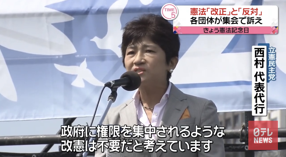 一方、立憲民主党の西村代表代行は、改正に反対する団体の集会に出席しました。西村氏は自民党などが主張する「緊急事態条項」の新設に反対する考えを表明する一方、「国民の権利に寄与するのであれば、憲法に限らず、必要な議論を積極的に行う」と述べました。