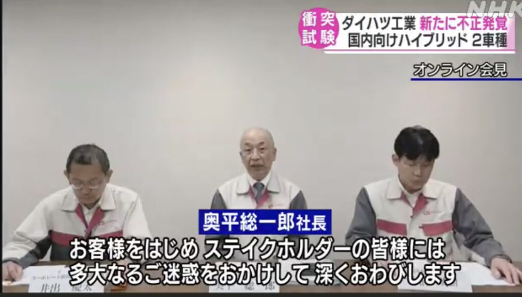 1: ぐれ ★ 2023/05/21(日) 16:38:45.64 ID:wml6V6sh9 >>5月19日 21時51分 NHK 海外向けの乗用車の衝突試験で不正があったダイハツ工業は、国内向けのハイブリッド車2車種の衝突試験でも新たに不正が発覚したことを明らかにしました。 会社は出荷や... -
