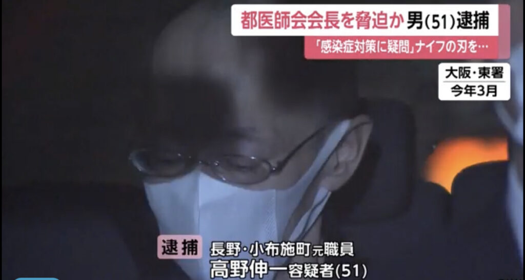都医師会会長に「シケイ」カッターの刃送りつけ脅迫か “反ワクチン”51歳男逮捕