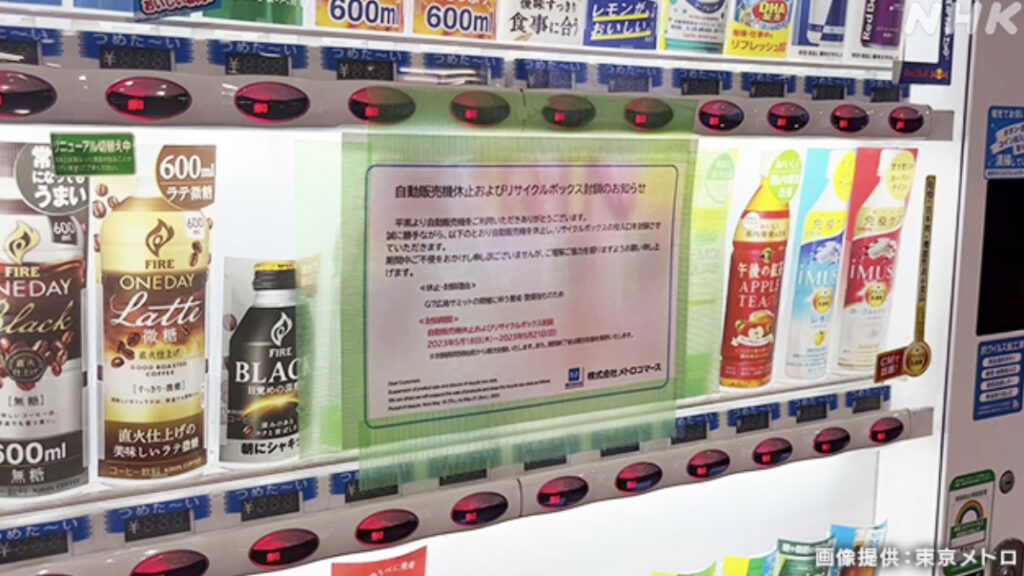 東京メトロ 一部で自販機利用停止 困惑も G7広島サミット警戒
