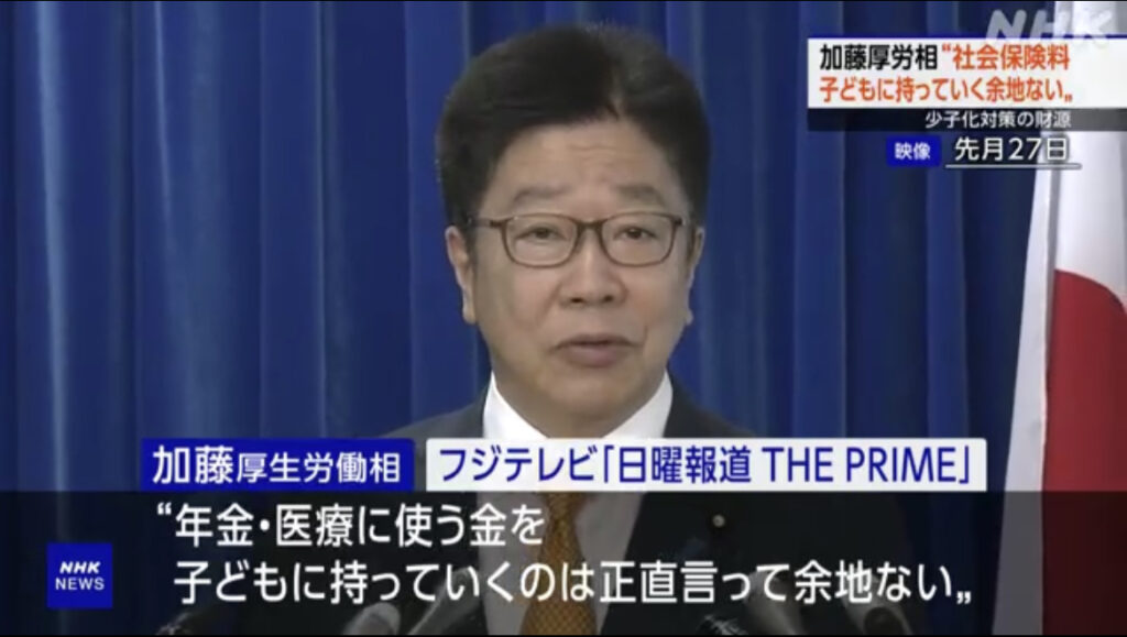 【少子化対策】加藤厚労相 “社会保険料 子どもに持っていく余地はない”