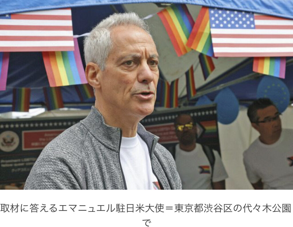 エマニュエル駐日米大使 同性婚「早期に法制化を」本紙(東京新聞)に強調「排除する社会は未来を築けない」