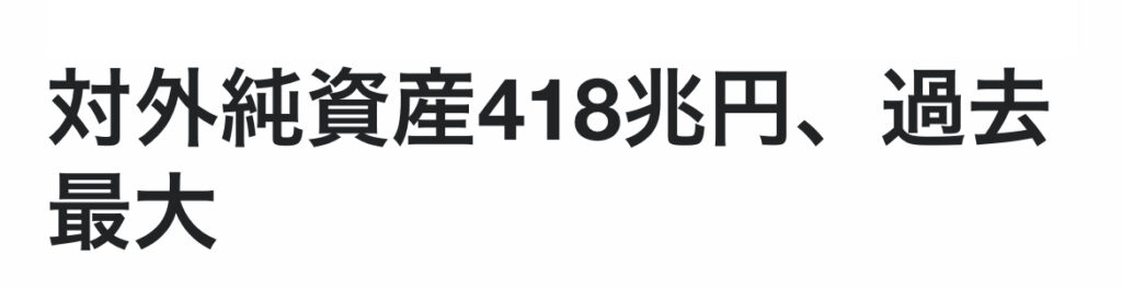 日本政府や企業・個人投資家が海外に持つ対外純資産の残高が418兆円 過去最大