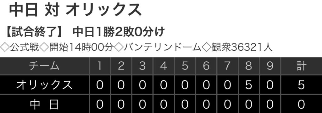 【野球】交流戦 D 0-5 B [6/4] オリックス連勝で首位浮上!森7号先制3ラン、宮城2安打10K完封5勝目&プロ初タイムリー 中日連敗