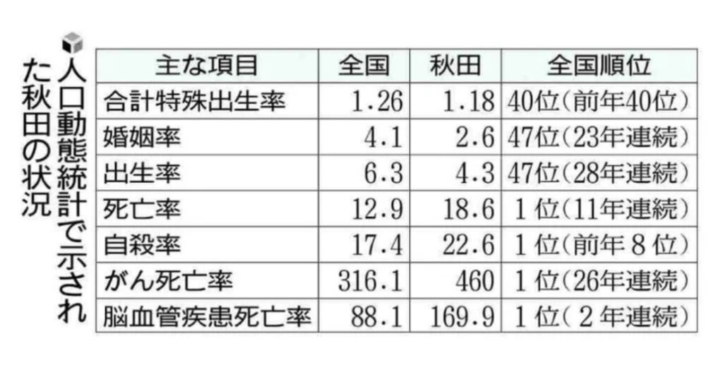 1: はな ★ 2023/06/04(日) 15:14:16.20 ID:eJVaf0kj9 「自殺率」全国ワーストは3年ぶりに秋田県、32人増の209人 2023/06/04 11:03 読売新聞 https://www.yomiuri.co.jp/national/20230602-OYT1T50211/ 厚生労働省が2日発表した2022年の人口動...