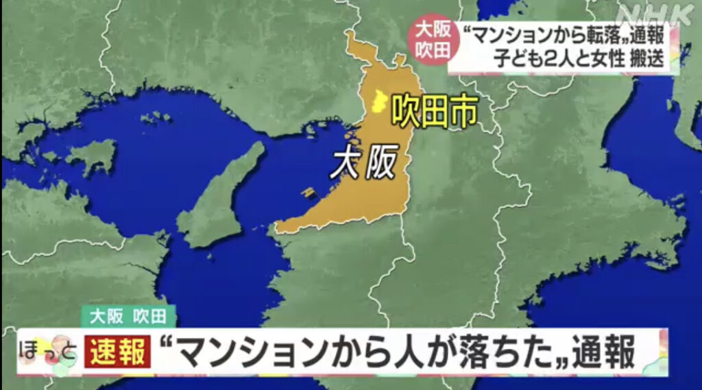 【大阪】吹田 マンションから転落か 子ども2人と成人女性搬送