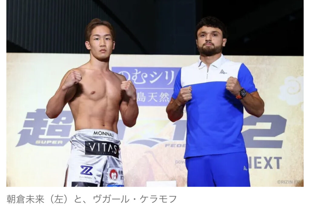 1: シャチ ★ 2023/07/30(日) 20:13:04.75 ID:JvPjcGp/9 ◆超RIZIN.2 RIZINパート ▽第8試合 フェザー級タイトルマッチ MMAルール(66キロ) 〇ヴガール・ケラモフ(1回2分41秒 リアネイキッドチョーク)朝倉未来●(30日、さい... -