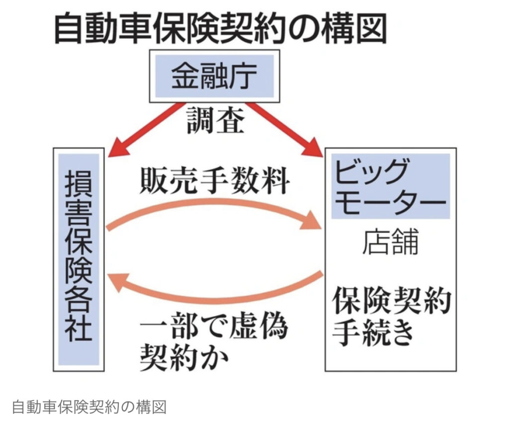 1: シャチ ★ 2023/07/30(日) 20:10:56.18 ID:vlBxstwa9 7/30(日) 18:37配信 共同通信 https://news.yahoo.co.jp/articles/bc53e344550fe9acf24c171211d13df507d17c77 中古車販売大手ビッグモーターが保険代理店としての立場を悪用し、虚偽の自動車保険契... -