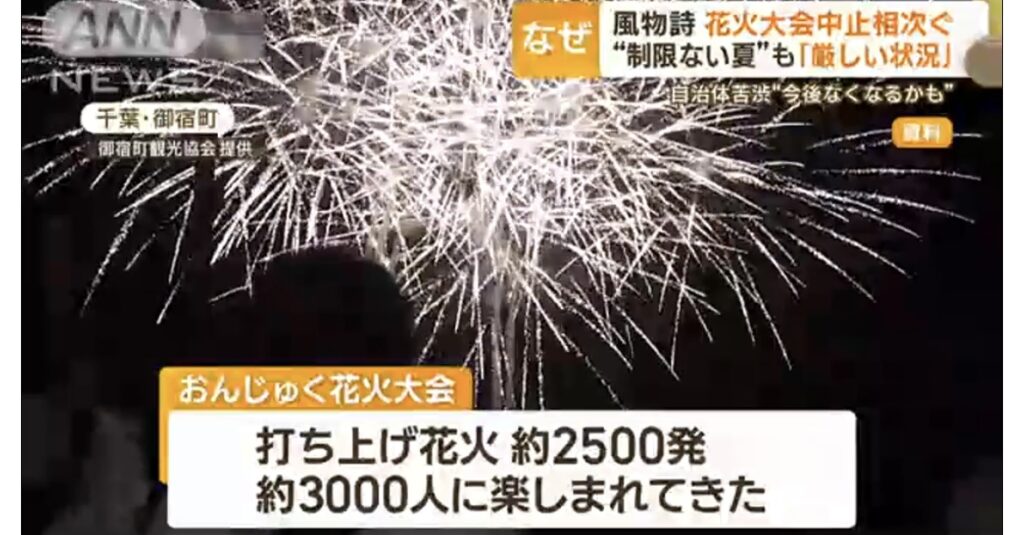 1: 茶トラ(公衆電話) [RU] 2023/07/14(金) 15:28:33.98 ID:Yxw7TO4S0● BE:421685208-2BP(4000) sssp://img.5ch.net/ico/syobo2.gif もうすぐ夏の風物詩・花火のシーズンを迎えます。多くの自治体が4年ぶりに花火大会を復活させる一方、中止を発表する自治... -