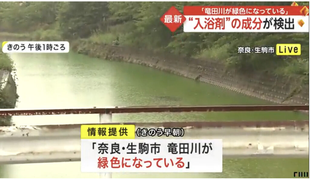 【奈良】“入浴剤”の成分が検出 「竜田川が緑色になっている」