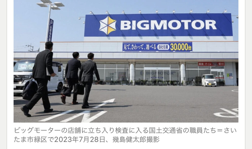 1: ばーど ★ 2023/07/29(土) 18:50:01.44 ID:3erkGdxG9 渦中の「ビッグモーター」店舗を訪れて驚いた 中古車販売大手ビッグモーターをめぐる動きが慌ただしい。同社は損害保険金を水増しするために車の修理で不正を行った疑いが強まり、国土交通省が7月28... -