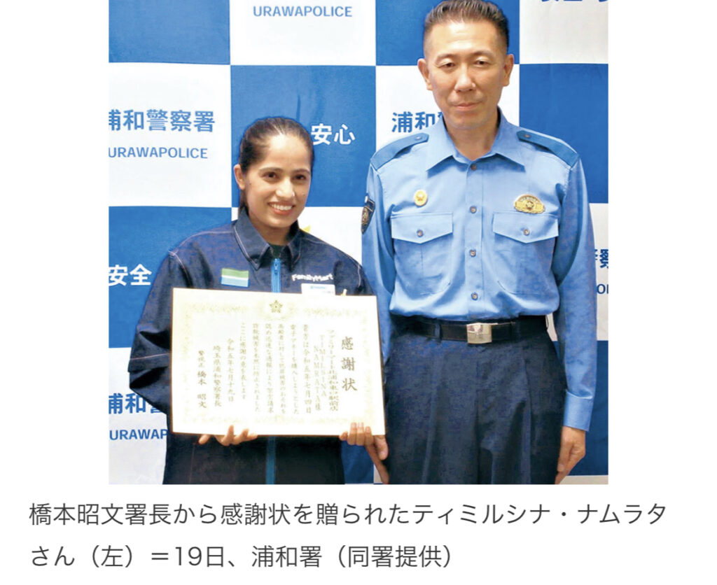 1: ばーど ★ 2023/07/28(金) 10:12:45.35 ID:MXAUSp/U9 電子マネーを買いに来た高齢女性に声をかけ、架空請求被害を未然に防いだとして、埼玉県警浦和署は、「ファミリーマート北浦和東口駅前店」アルバイトで、ネパール国籍のティミル・ナムラタさん(30... -