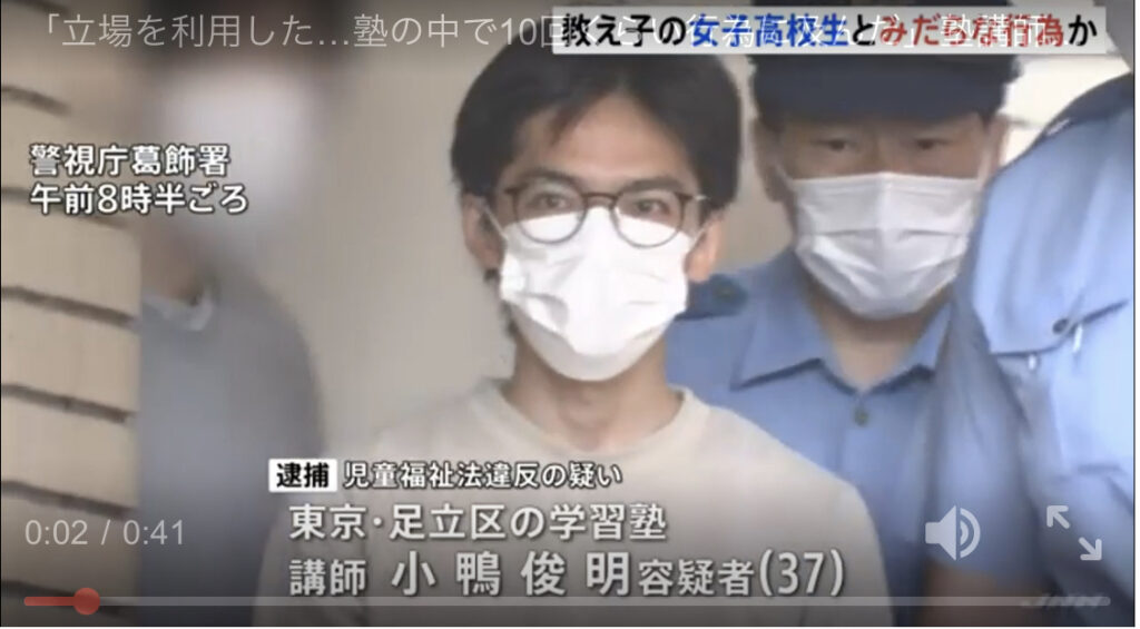【社会】「定期的にセッ◯スしてた」 37歳塾講師・小鴨俊明、教え子女子生徒をグルーミングして塾でセッ◯ス10回…東京