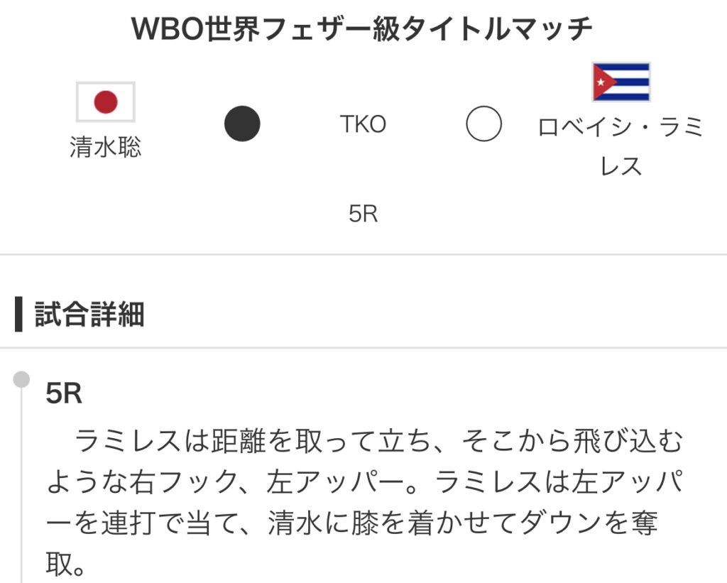 【ボクシング】WBO世界フェザー級タイトルマッチ 清水聡vsロベイシ・ラミレス 結果