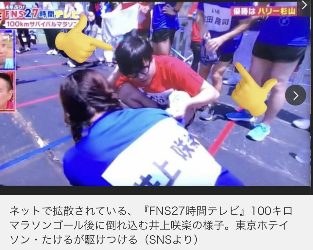 1: 冬月記者 ★ 2023/07/24(月) 16:50:20.91 ID:6Ji/NJky9 「なぜ助けない?」ゴール後に倒れる女性タレントを放置…フジ『27時間テレビ』マラソン対応が物議 7月22日、23日に放送されたフジテレビ系『FNS27時間テレビ』の目玉企画の一つだった、「100キロサ... -