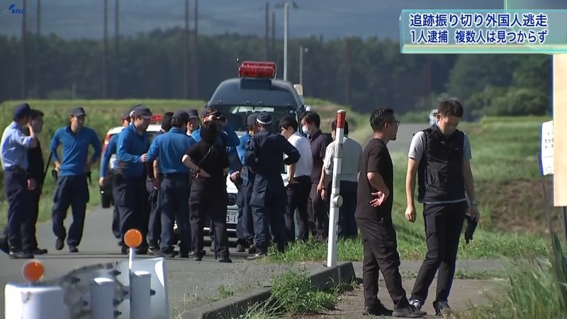 警察は車の中にいたカンボジア国籍の男1人を出入国管理法違反で現行犯逮捕しましたが、ともに乗車していた複数の男らは山の方へ歩いて逃走し、現在(午後6時時点)も見つかっていません。