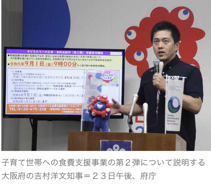 給付するのは、第1弾と同様に5千円相当の電子クーポン「お米PAYおおさか」で、府内の取り扱い店舗でコメを購入できる。アレルギーなどでコメが食べられない家庭のため、食料品も選べるようにする。