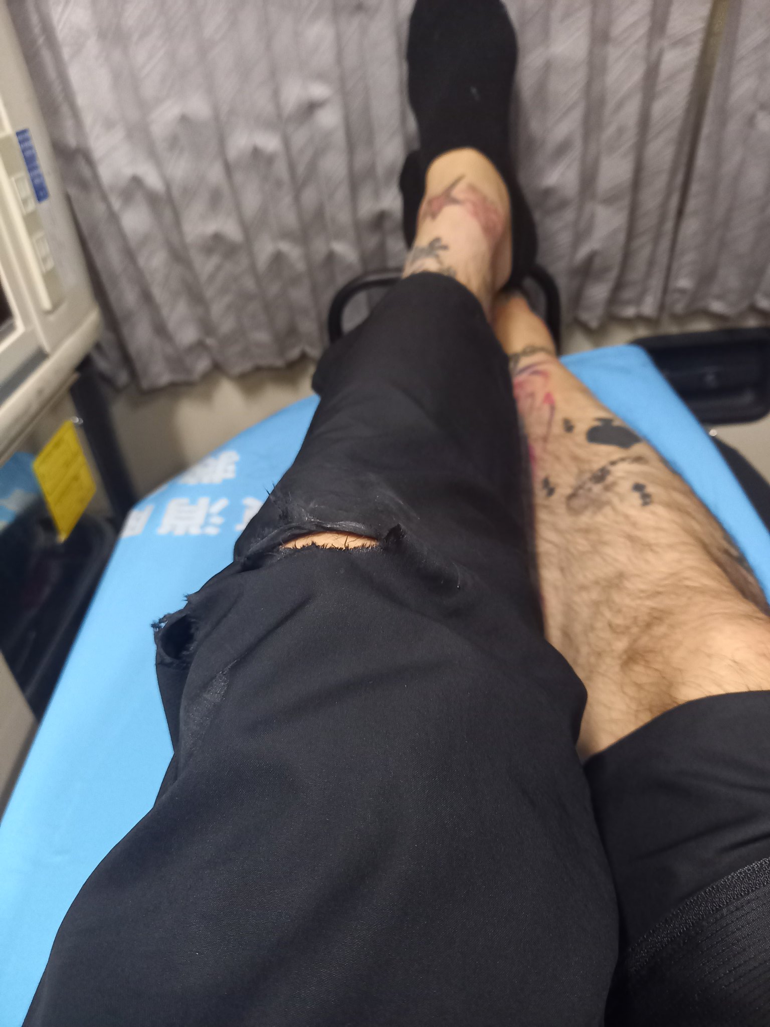 まさかのアクシデントだ。瓜田は「練習向かってたらタクシーのドアで吹っ飛ばされたから救急車乗ってます」と投稿。タクシーの写真、黒のパンツがボロボロになった様子が見て取れる、担架に乗った自身の下半身の写真も添えている。