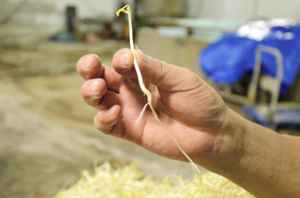モヤシの出来は日々違います。伸びがそろっていない、根がピンと張っていない。そんないつもと違う兆しに素早く気づき、手当てを考えます。何をどうするか、データだけでは管理できない。生き物だから。